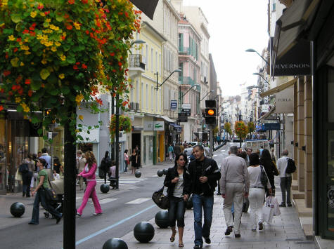The downtown was full of shops and cafes.